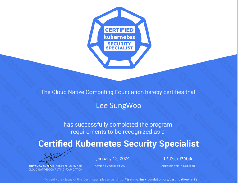 CKA를 취득후 대략.. 2년만에 CKS를 취득했습니다. (시험을.. Network 문제가 생겨서.. 3번떨어져.. 총 4번봤음..)