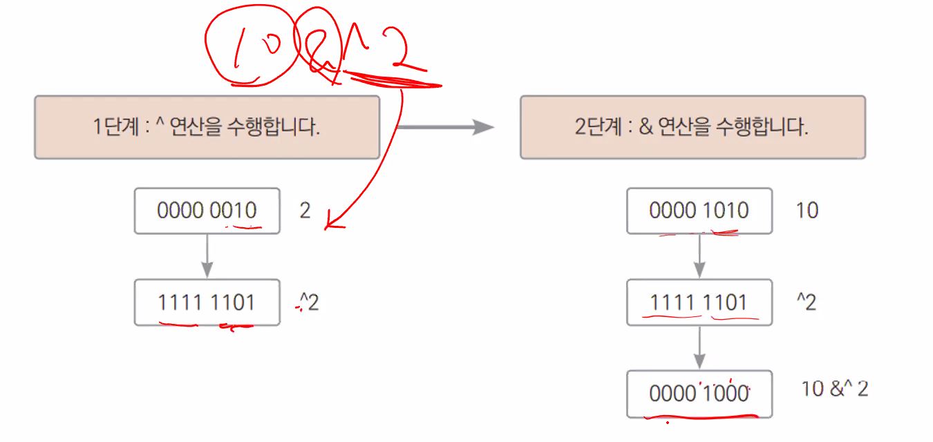 먼저 ^연산을 수행후 , & 수행을 합니다 ^연산은 비트를 반전한후 AND 연산으로 비트 클리어 연산을 진행합니다.