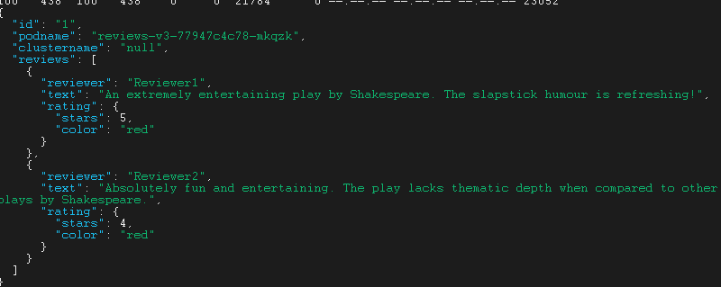 $ curl -H "end-user: sungwoo" http://reviews.example.com/reviews/1 | jq
